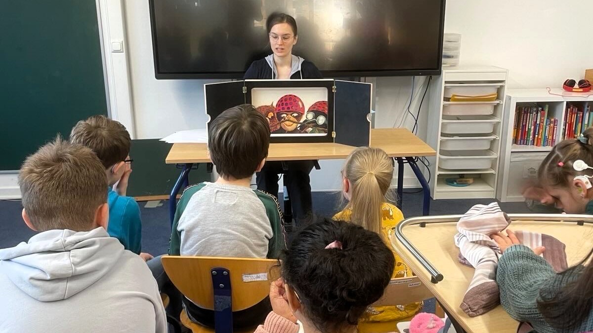 Die Schüler:innen haben gebannt zugehört, die Bilder im Kamishibai betrachtet und gemeinsam über Gehörtes und Gesehenes gesprochen.